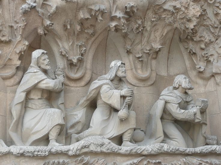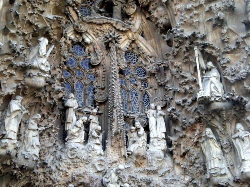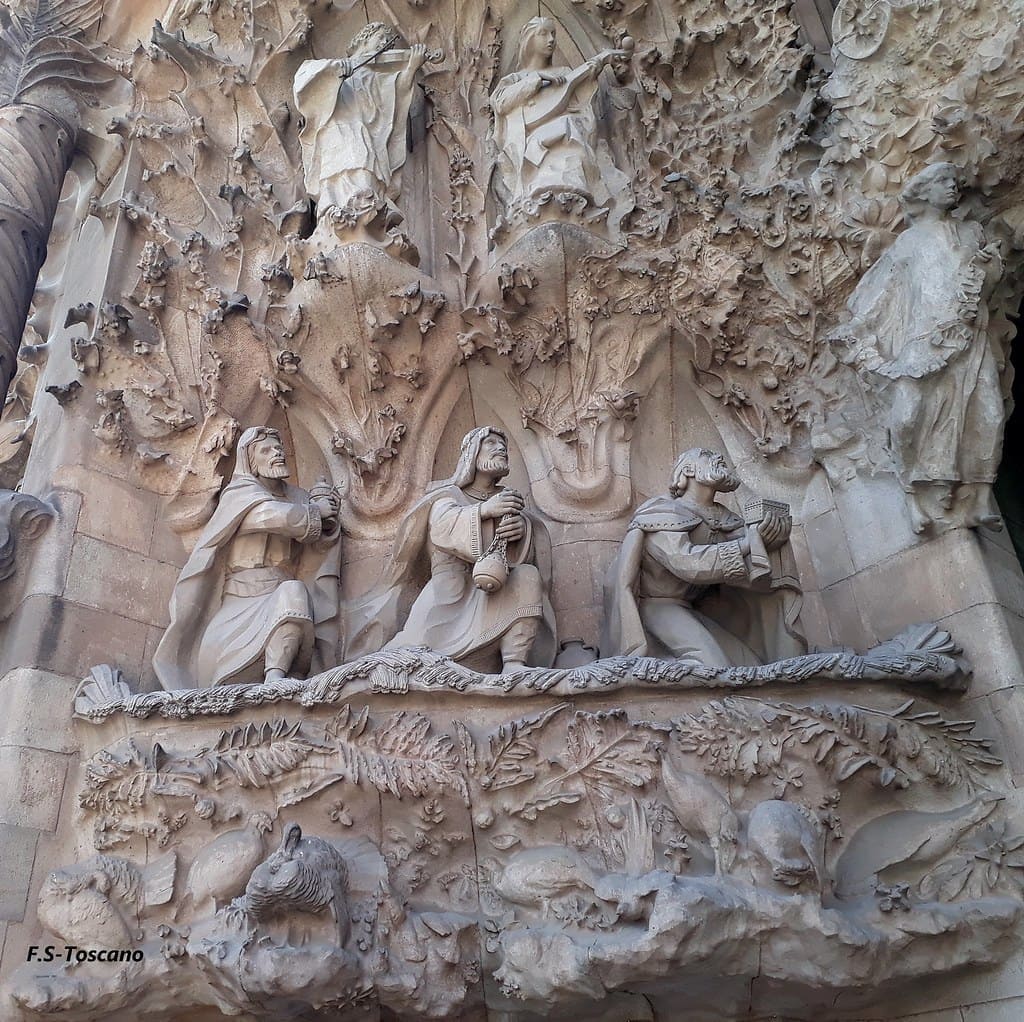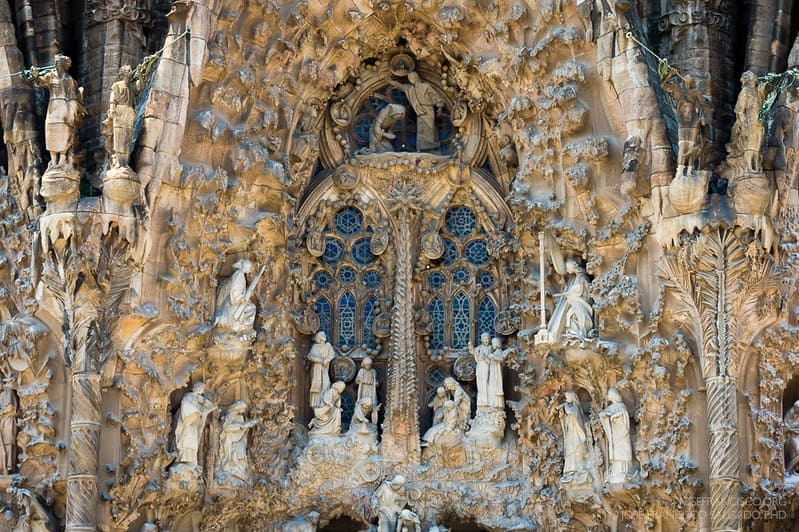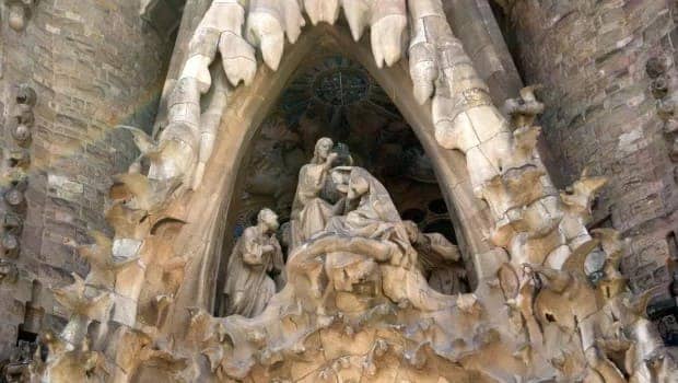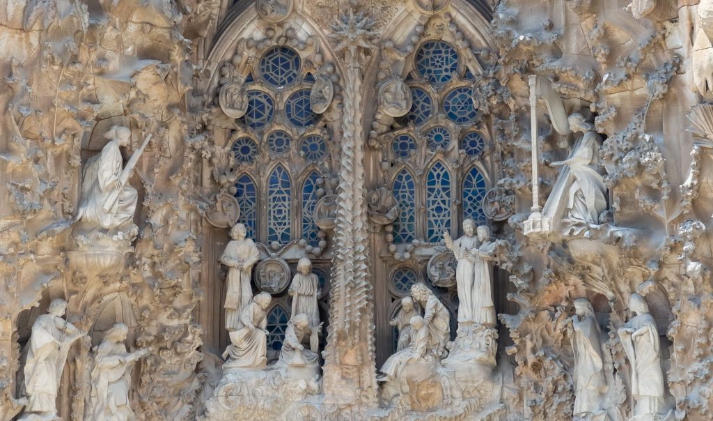 Саграда Фамилия — это «каменная Библия», рассказ о христианстве, воплощённый в скульптурах. На фасаде Рождества фигуры будто оживают, а каждая деталь несёт символический смысл — здесь нет ни одного участка без значения. Экскурсии по храму часто начинаются именно с этой стороны, где представлено рождение Христа.