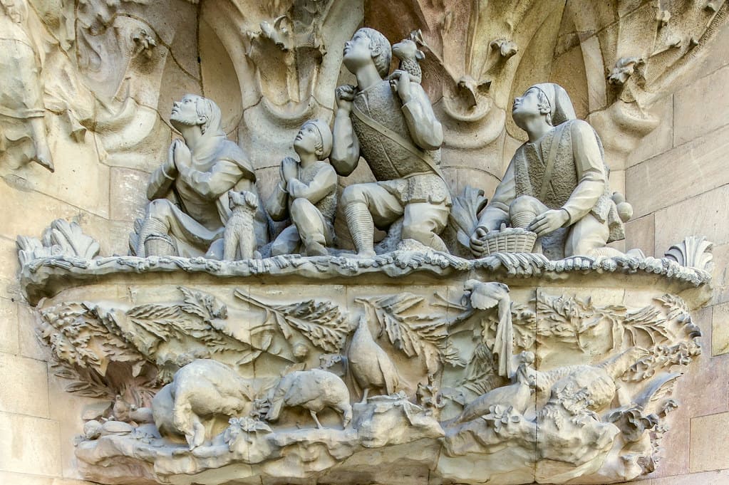 В качестве моделей Гауди выбирал людей, близких к храму и его строительству: рабочих, прихожан, жителей окрестных кварталов. Здесь можно встретить образы епископов и уличных торговцев, пастухов и солдат, мальчишек из таверны. Важна была не внешняя красота, а выразительность и внутренняя связь человека с библейским персонажем.