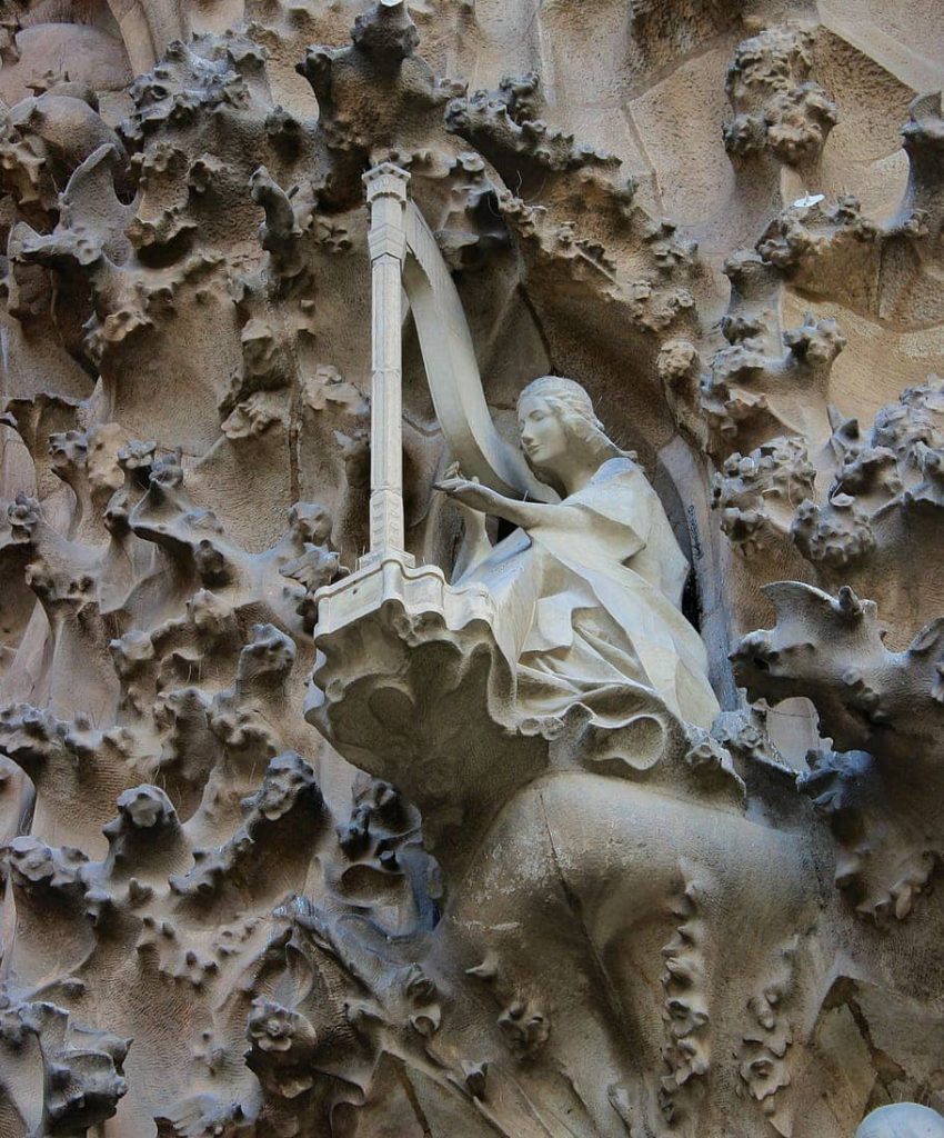 Иногда Гауди добавлял символические детали прямо в композицию. Например, в сцене Благовещения фигуры окружены четками, а над ними сияет звёздное небо. При этом звёзды расположены в точном соответствии с ночным небом в момент рождения Христа: начиная с 9 часов по циферблату можно различить созвездия Девы, Льва, Рака, Близнецов, Тельца и Овна.