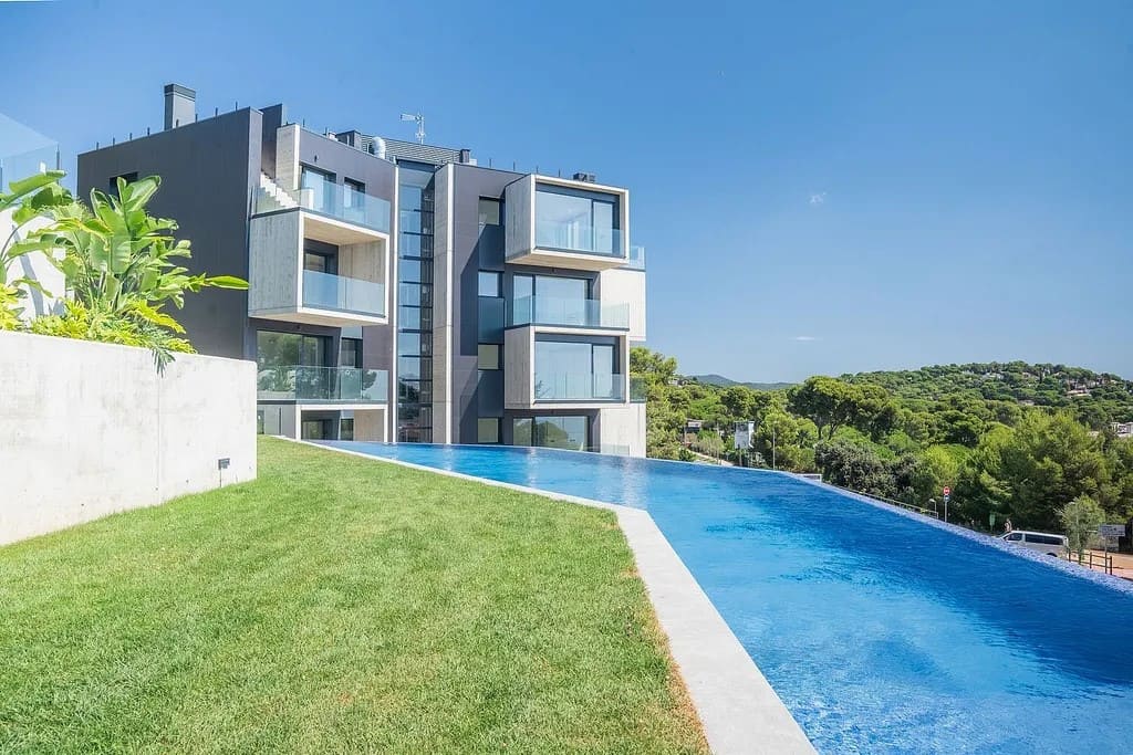 Продаётся новая двухкомнатная квартира на улице Каниго с бассейном и садом — часть эксклюзивного комплекса Bella Dona Residencial, расположенного в Сант-Антонио-де-Калонже, рядом с Плайя-де-Аро, в самом сердце Коста-Бравы.