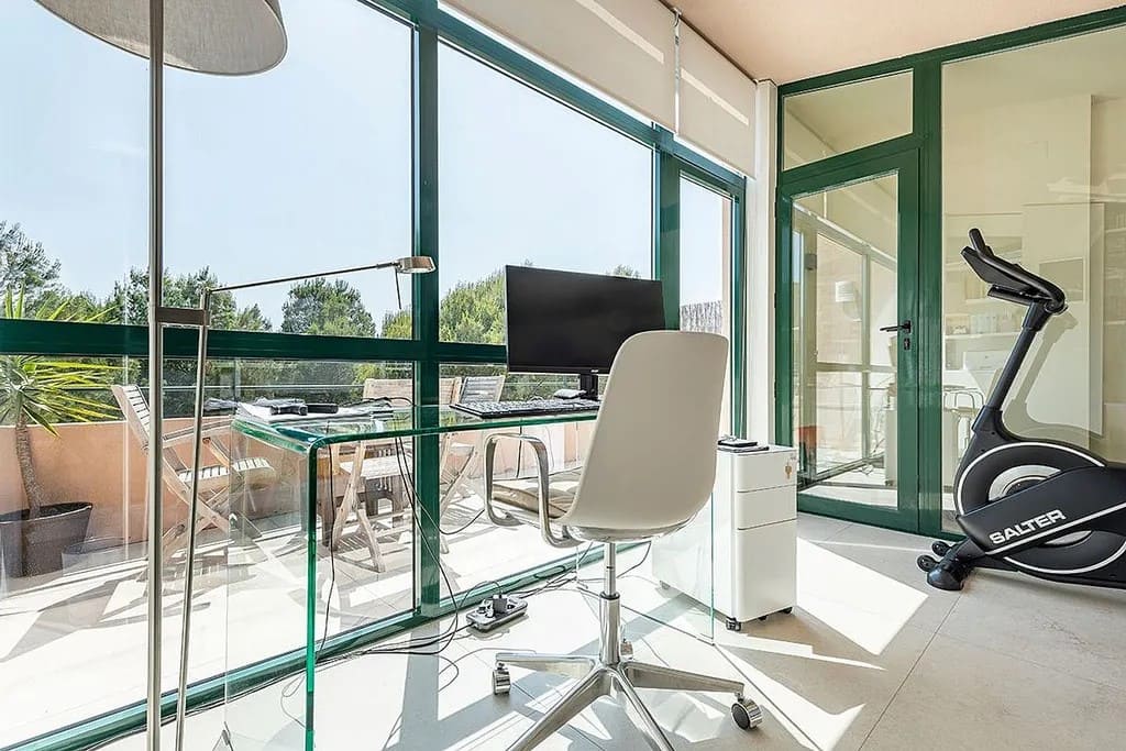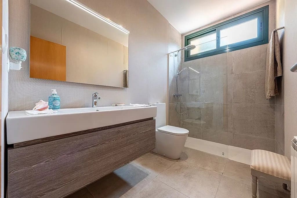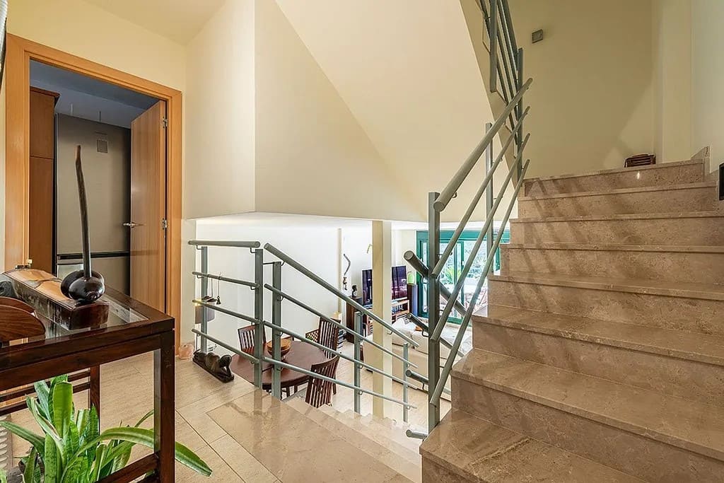Дом распределён на нескольких уровнях и отличается продуманной планировкой. В нем три просторные спальни, одна из которых — мастер-спальня с собственной ванной комнатой, а также вторая полноценная ванная и гостевой туалет. Дополнительным преимуществом является отдельный кабинет с выходом на частную террасу — идеальное пространство для работы из дома или учебы.