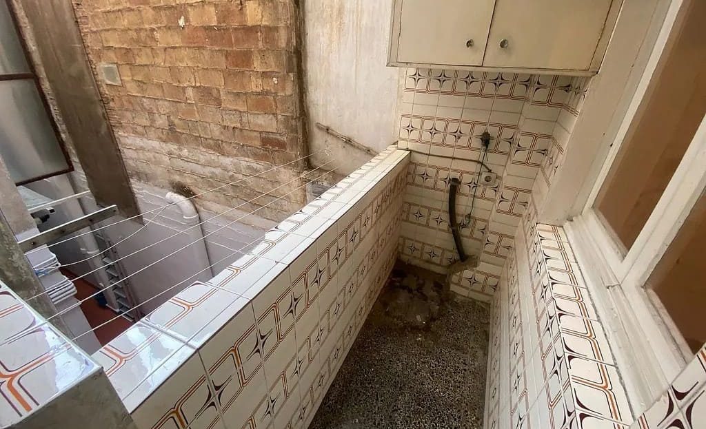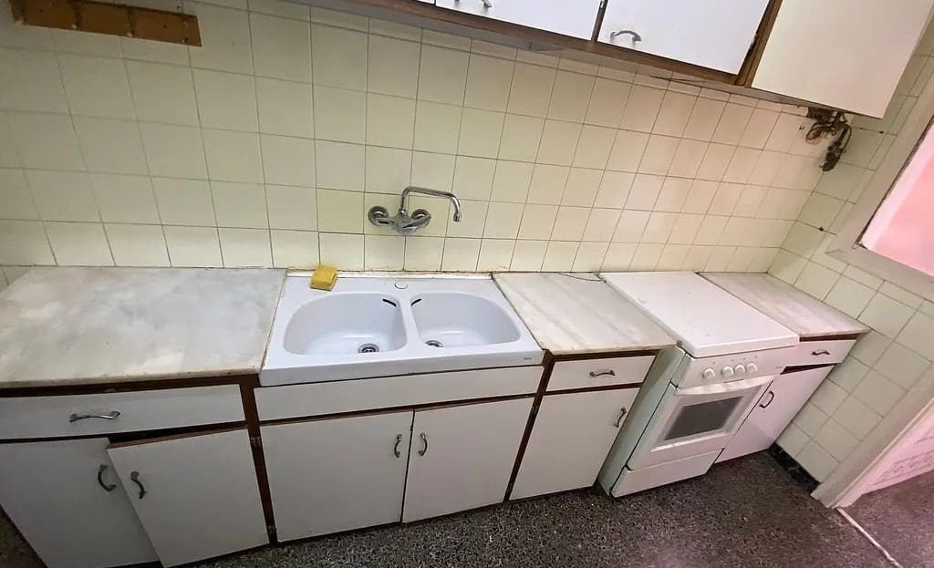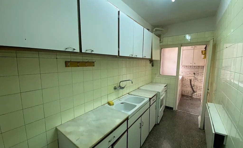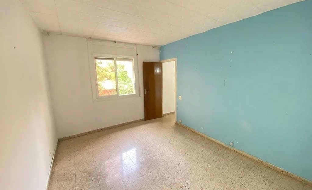 Продается квартира с 3 спальнями в районе Байш-Гинардо (округ Орта-Гинардо) в Барселоне. Планировка включает гостиную-столовую, отдельную кухню с подсобным помещением и ванную комнату с душем. Квартира требует небольшого ремонта.
