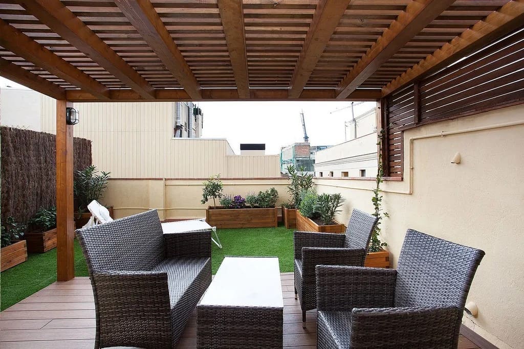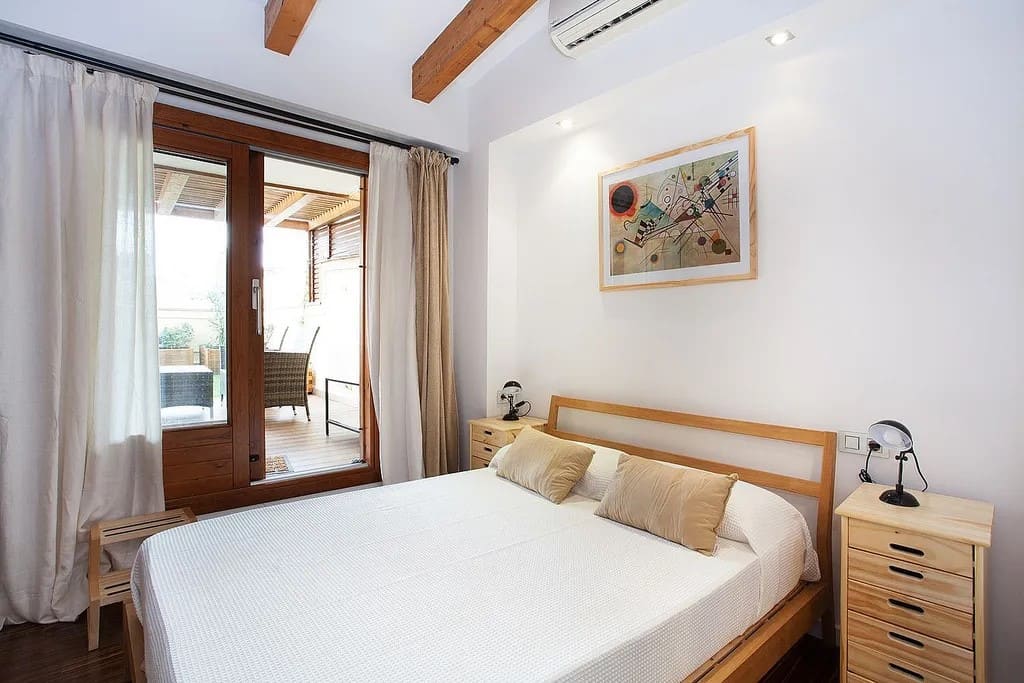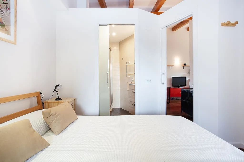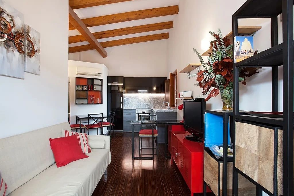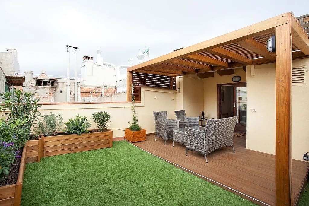 В непосредственной близости от Лас-Рамблас, прекрасной площади Пласа-Реаль, рынка Бокерия, района с множеством музеев, таких как Ла-Виррейна, MACBA и CCCB. Высокие потолки и паркетный пол по всей квартире. Одна очень просторная спальня с двуспальной кроватью, ванной комнатой и прямым выходом на большую террасу, которая добавляет ощущение простора и открывает вид на город. Гостиная-столовая с оборудованной мини-кухней. Прямой выход на вторую, очень просторную террасу.